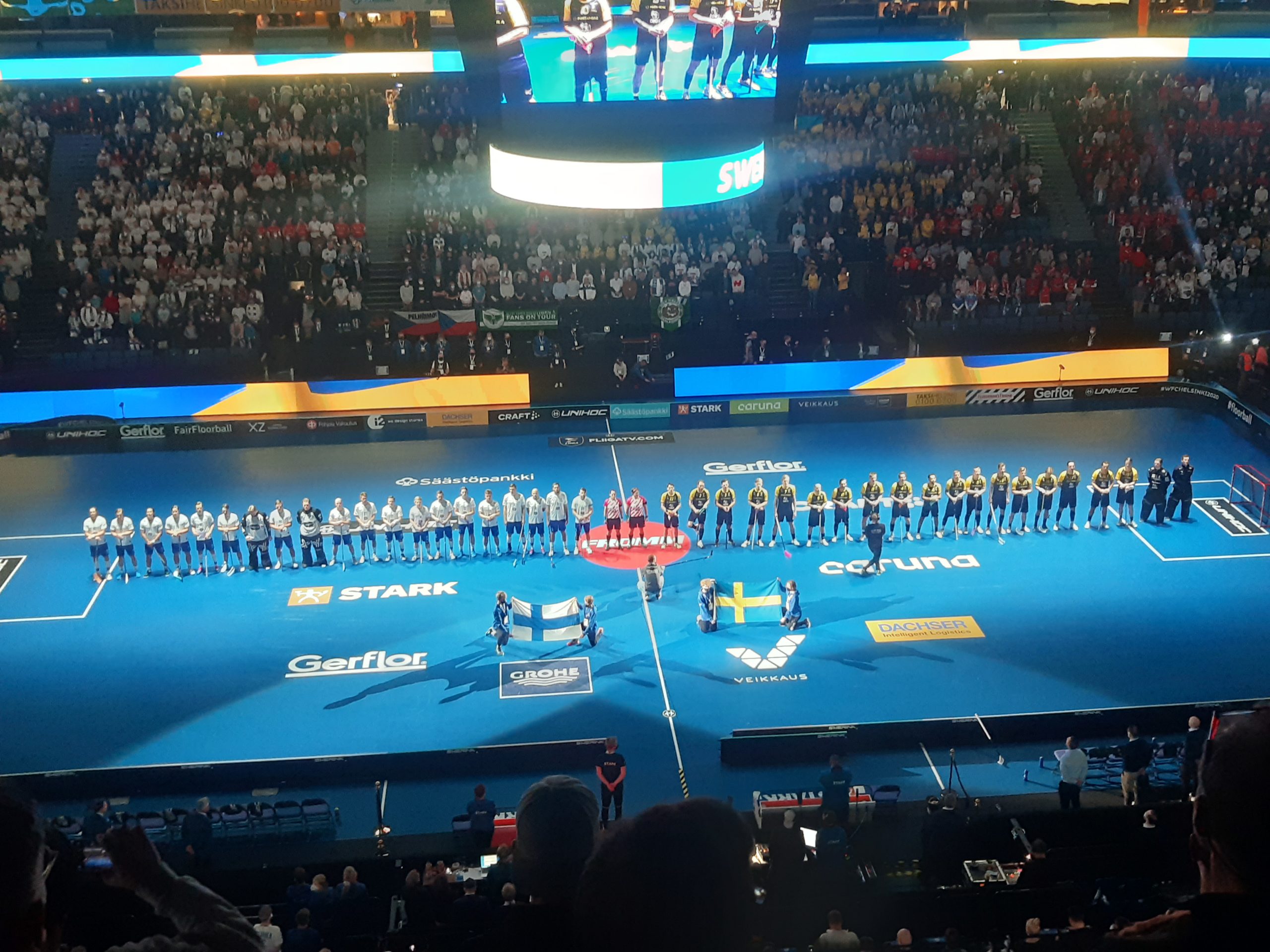 Ehrenamtler der DJK Holzbüttgen Floorballabteilung auf großer Tour im Dezember 2021 bei der Floorball WM in Finnland. WM Finale mit 12.500 Zuschauern.