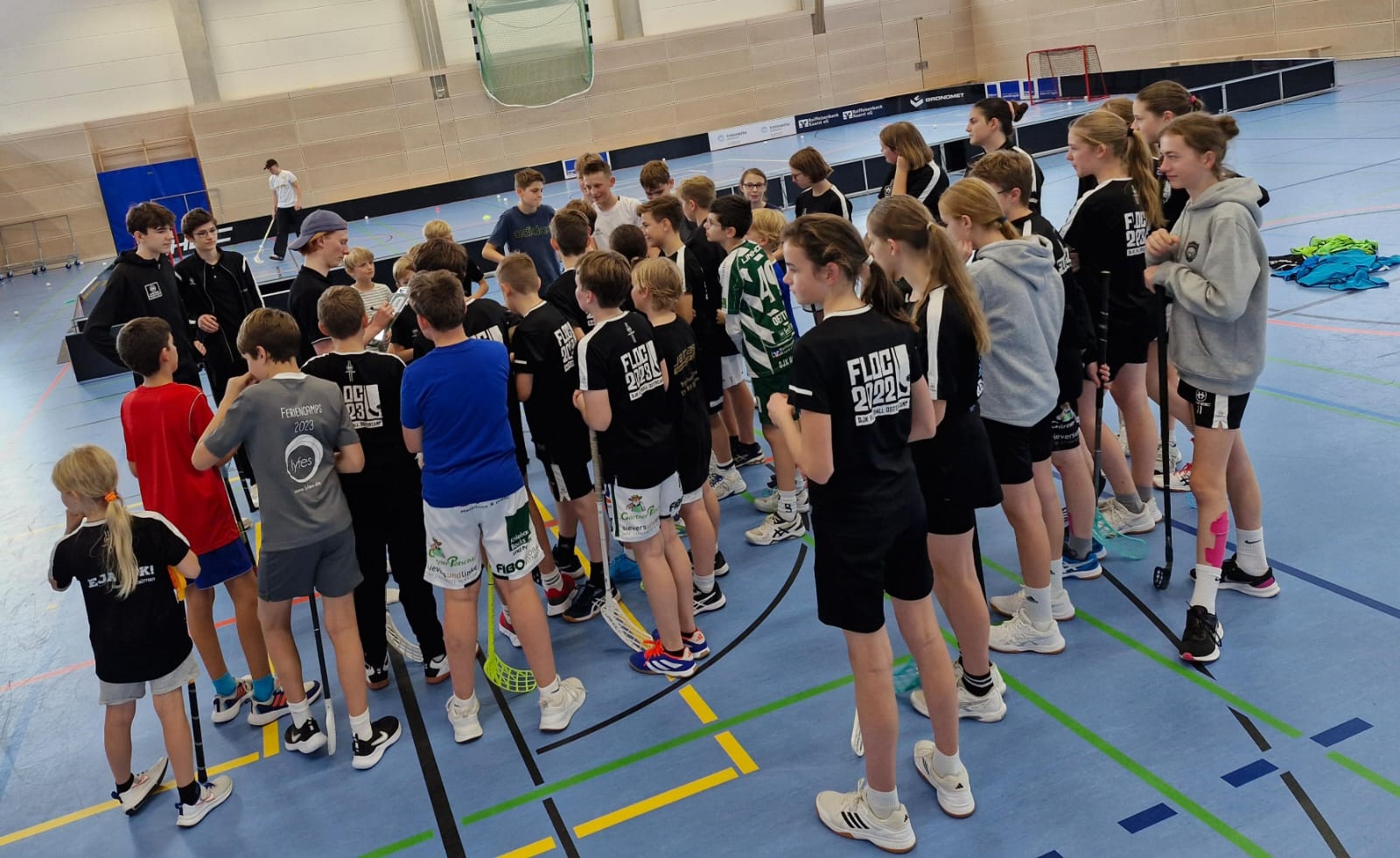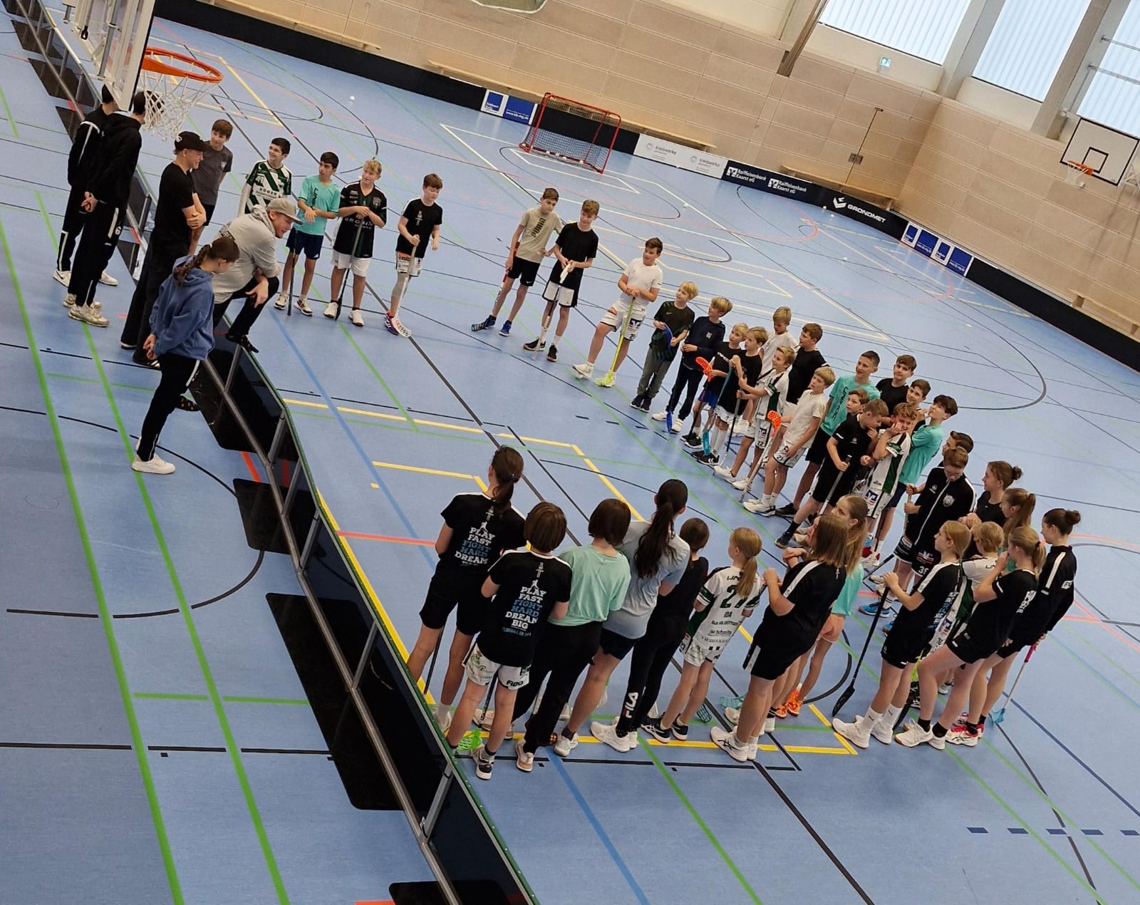 In der ersten Woche der Herbstferien fand erneut unser beliebtes UNIHOC Floorball Oktober Camp statt. 45 Jugendspieler und -innen trainierten in der neuen Sporthalle der Gesamtschule Büttgen in mehreren Einheiten täglich mit unseren Jugentrainern Lea de Zwaan, Regina Safenreider, Lorenz Oetting, Conrad Lehwalder, Kryštof Maňour, Noah de Zwaan, Thilo Ahrens und Joel Heine.