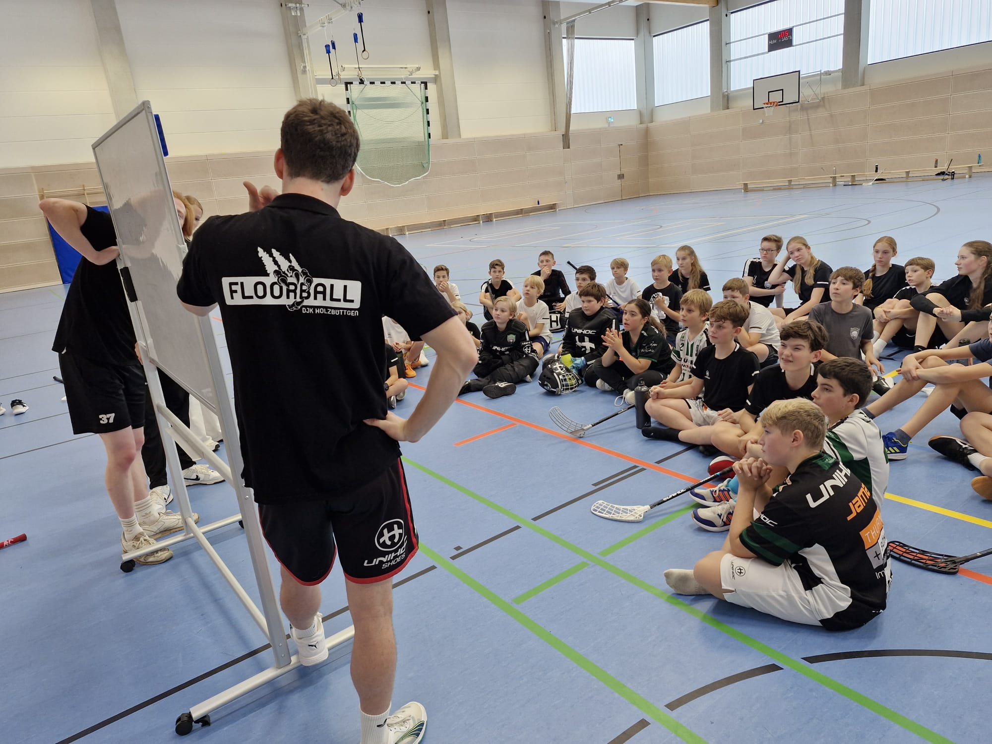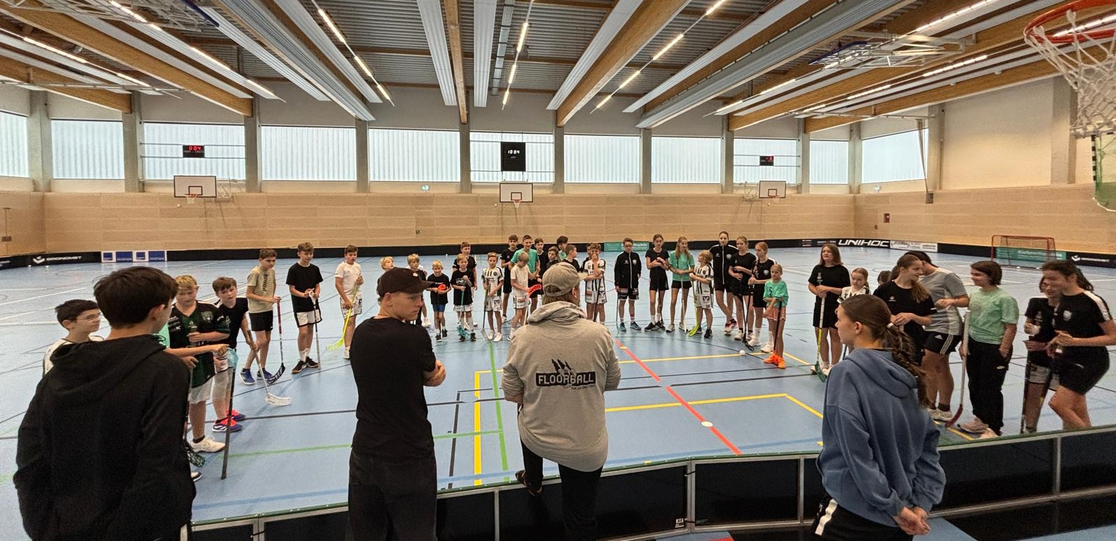 - Der Fokus in dieser Woche für die älteren Kinder liegt auf dem Spiel auf dem Großfeld! Natürlich wird es wir üblich auch Übungen geben, die die eigene Technik fördern, aber da die Bedeutung des Großfelds im Floorball in Deutschland auch im Jugendbereich immer mehr zunimmt, wird dies das erste Großfeld-FLOC werden. Großfeld Spielaufbau, grundsätzliche Taktiken sowie Besonderheiten und Unterschiede im Vergleich zum Kleinfeld sollen altersgerecht thematisiert werden.