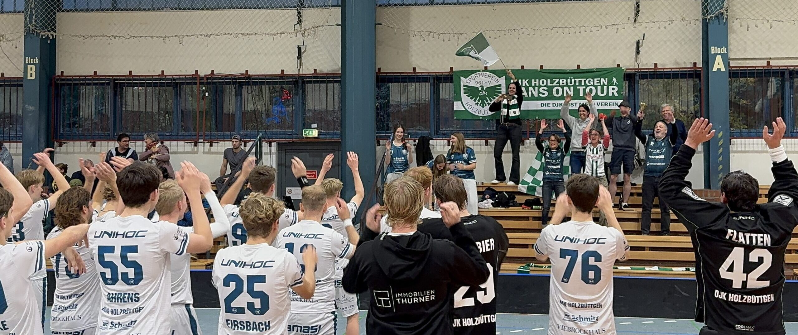Die DJK Holzbüttgen hat am zweiten Auswärts-Doppelspielwochenende der Saison in der 1. Floorball-Bundesliga Höhen und Tiefen erlebt, darf sich nach einem Sieg und einer Niederlage aber über die vorübergehende Tabellenführung freuen. Nach einer deutlichen 3:10-Niederlage bei den Floor Fighters Chemnitz zeigte die Mannschaft von Trainer Simo Leppänen nur 24 Stunden später beim 7:5-Erfolg gegen die Unihockey Igels Dresden eine starke Reaktion – und geht als Spitzenreiter in die Länderspielpause. (Bericht: Michael Mülhöfer)
