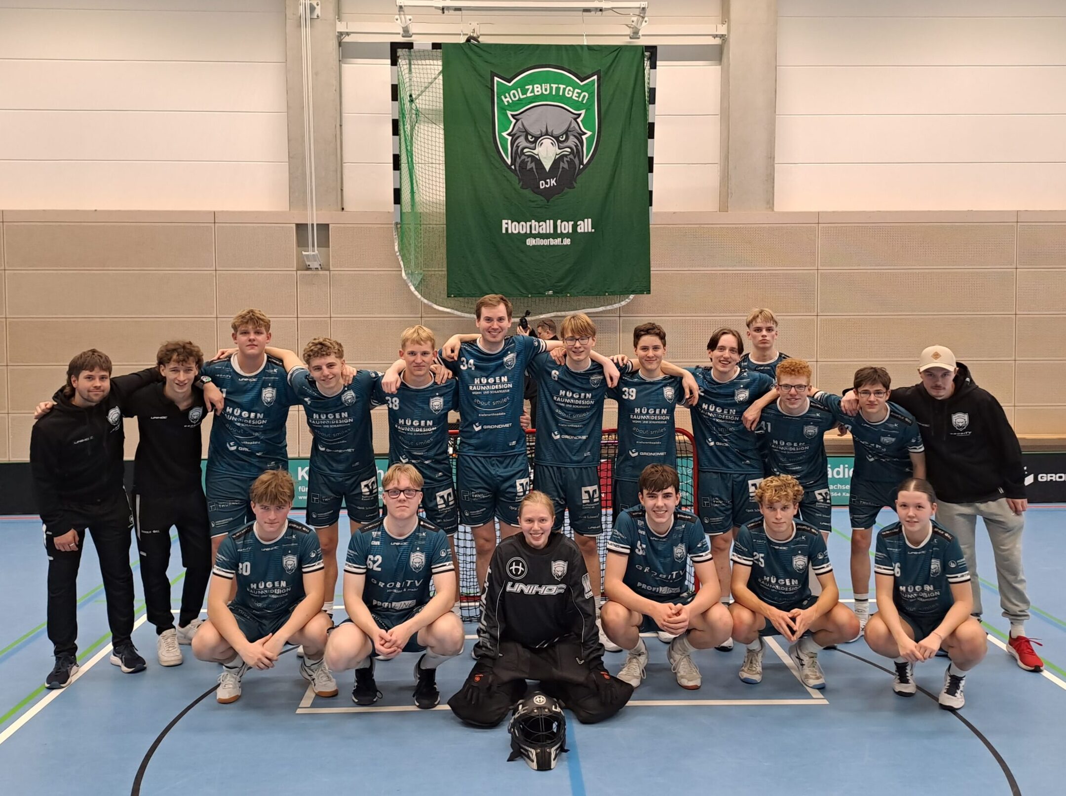 Am zweiten Spieltag der NRW-Regionalliga, konnte das Trainerteam auf den vollen Kader zugreifen und die DJK trat mit drei vollen Reihen an. Dabei setzten die Grün-Weißen auf eine gute Mischung aus erwachsenen Hobbyspielern, erfahrenen U19ern sowie auf junge Leistungs-Spielerinnen und Spieler, die bereits in der ersten Bundesliga Einsätze hatten. Somit gab es für alle die Gelegenheit zusätzliche Spielpraxis und Erfahrung in der höchsten NRW-Liga zu sammeln und dies vor über 60 Zuschauern in der Sporthalle der Emmy-Noether-Gesamtschule.