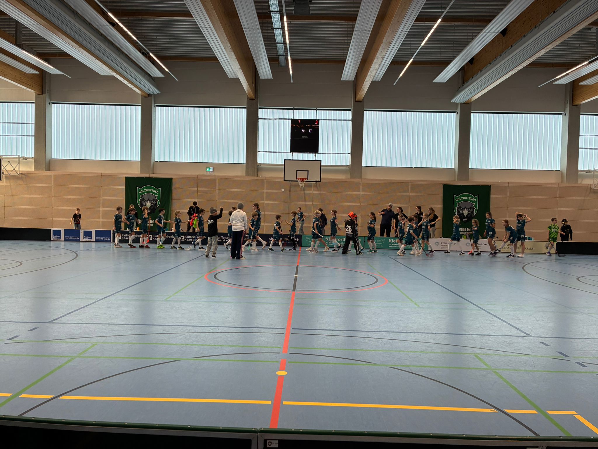 Im ersten Spiel das Tages gegen die SV Rabbits Neukirchen 2 zeigte das Girls-Team „grün“ eine starke Leistung. Die Mädels hielten das gesamte Spiel über prima mit und brachte nach einem spannenden Endspurt einen knappen 4:3 Sieg über die Schlussminuten und sicherten sich so gleichzeitig die ersten 3 Punkte in der eigenen Halle. Für den überwiegenden Teil der Spielerinnen des Teams „grün“ handelte es sich um das erste Spiel gegen Kinder aus anderen Vereinen überhaupt.