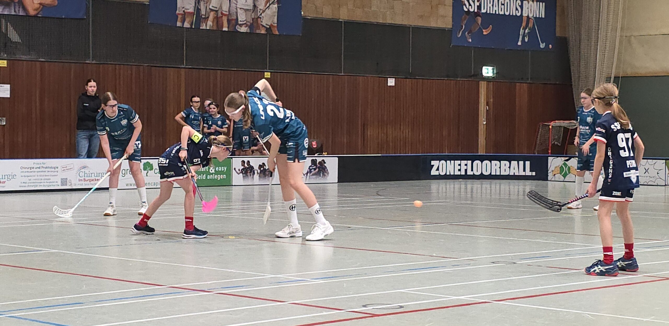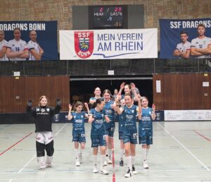 Im zweiten Spiel gegen die Dragons Bonn ließ die DJK Holzbüttgen von Beginn an keinen Zweifel aufkommen, dass sie sich die Chance auf die Meisterschaft nicht mehr nehmen lassen wollte. Bereits in der ersten Minute erspielte sich das Team eine 2:0-Führung und nahm den Bonnerinnen damit früh den Wind aus den Segeln. In der Folge fielen die Treffer nahezu im Minutentakt. Zur Halbzeit stand es bereits 15:2 für die DJK. Auch nach dem Seitenwechsel blieb die Mannschaft konzentriert und baute die Führung weiter aus. Am Ende stand mit dem 23:2 ein weiterer Kantersieg, der die beeindruckende Offensivstärke des Teams unterstrich.