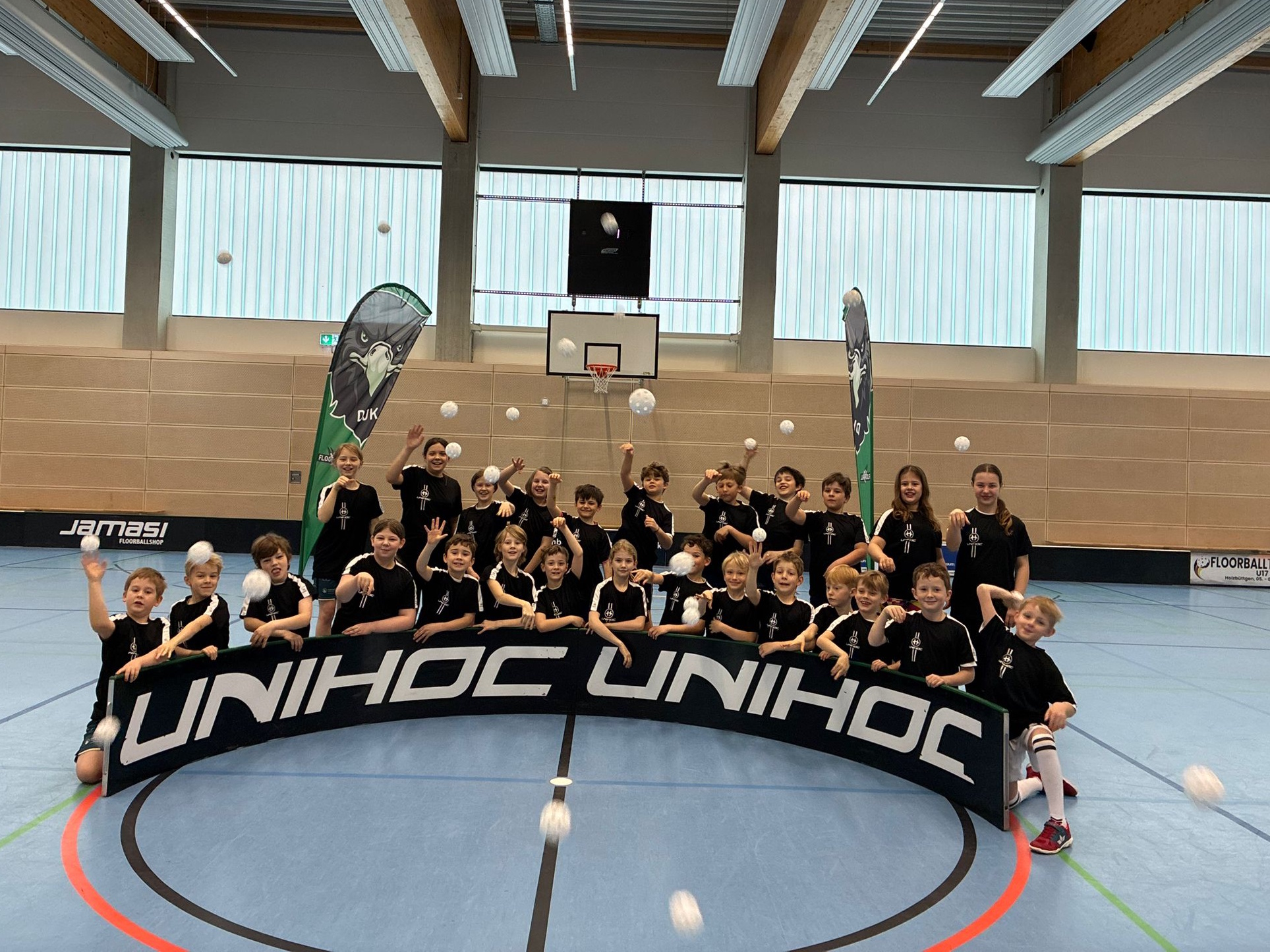 In der Sporthalle der Gesamtschule Büttgen fand in der ersten Woche der Osterferien 2026 das mittlerweile 14. UNIHOC Floorball Ostercamp der Floorballabteilung der DJK Holzbüttgen statt.