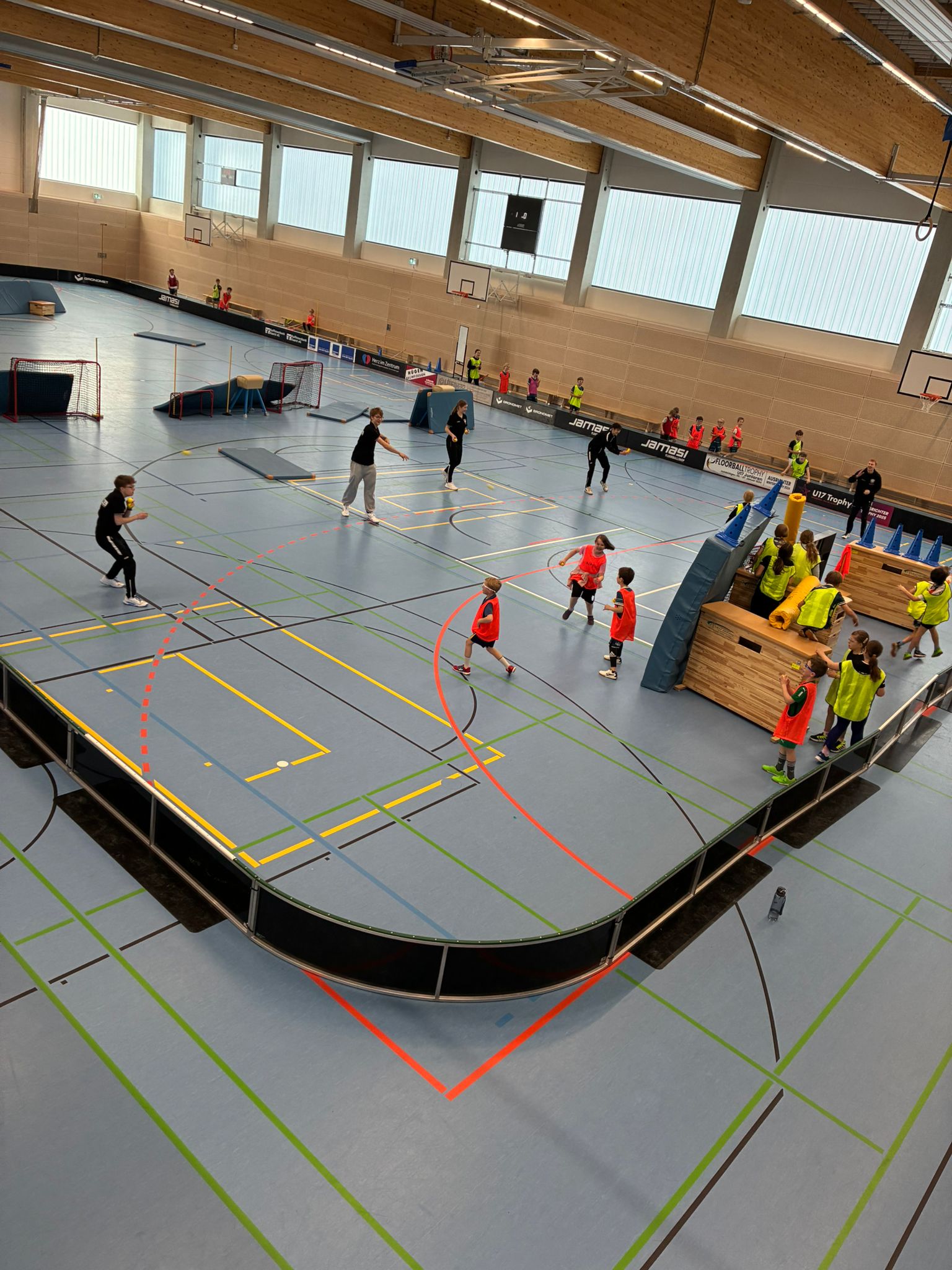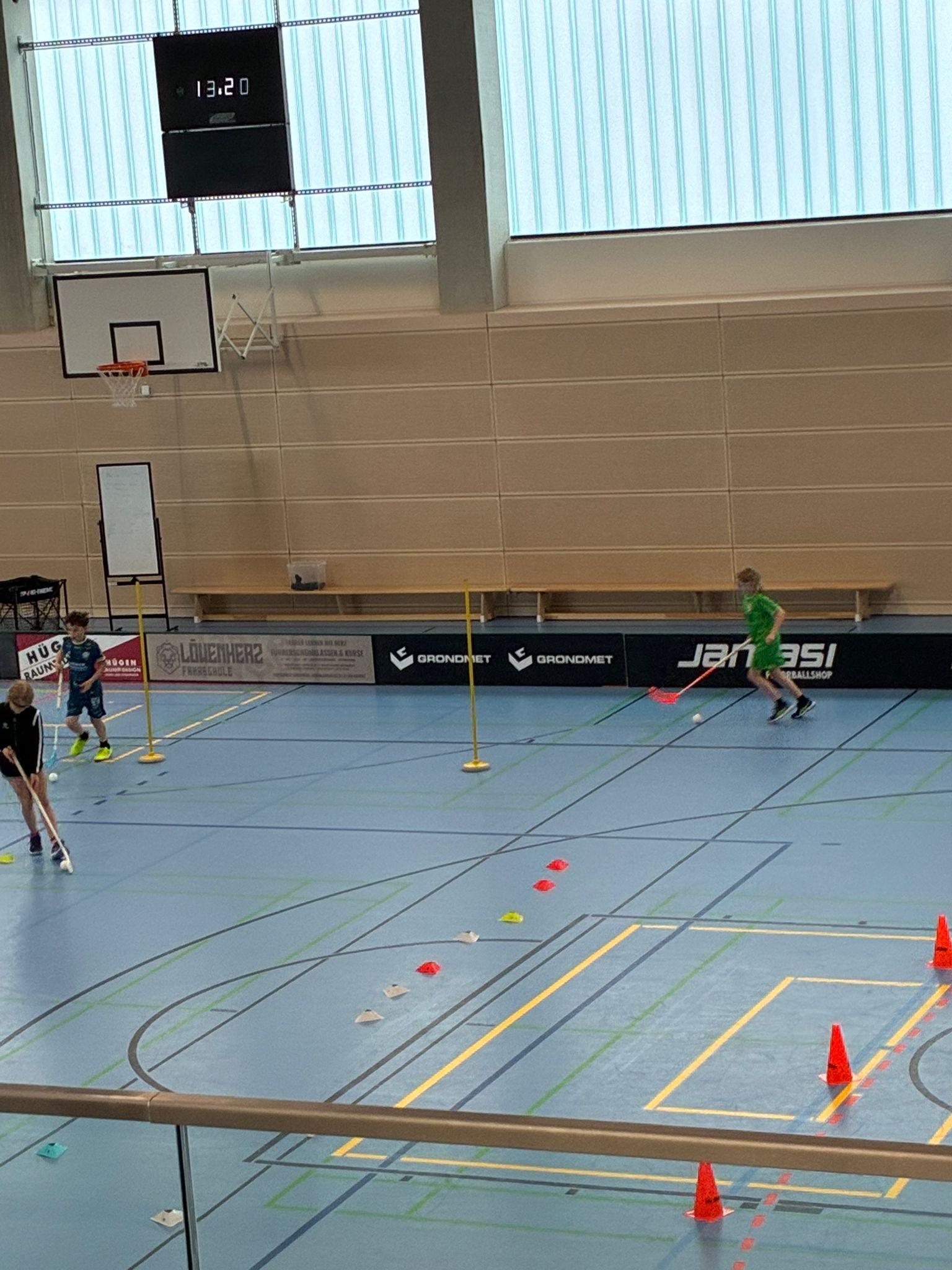 Dieses Jahr übten 33 Kinder im Alter zwischen 7 und 12 Jahren vier Tage lang von jeweiĺs 10 bis 16 Uhr intensiv Floorball zu spielen. Das Konzept des Floorball Ostercamps, ausgiebig Floorball zu trainieren in Verbindung mit ganz viel Spaß, kam auch in diesem Jahr wieder hervorragend an. Von der Ballbehandlung über das Passen bis hin zum Schießen standen für die jungen Floorballbegeisterten viele Übungen und Spielvarianten auf dem Programm des viertägigen Floorballcamps.