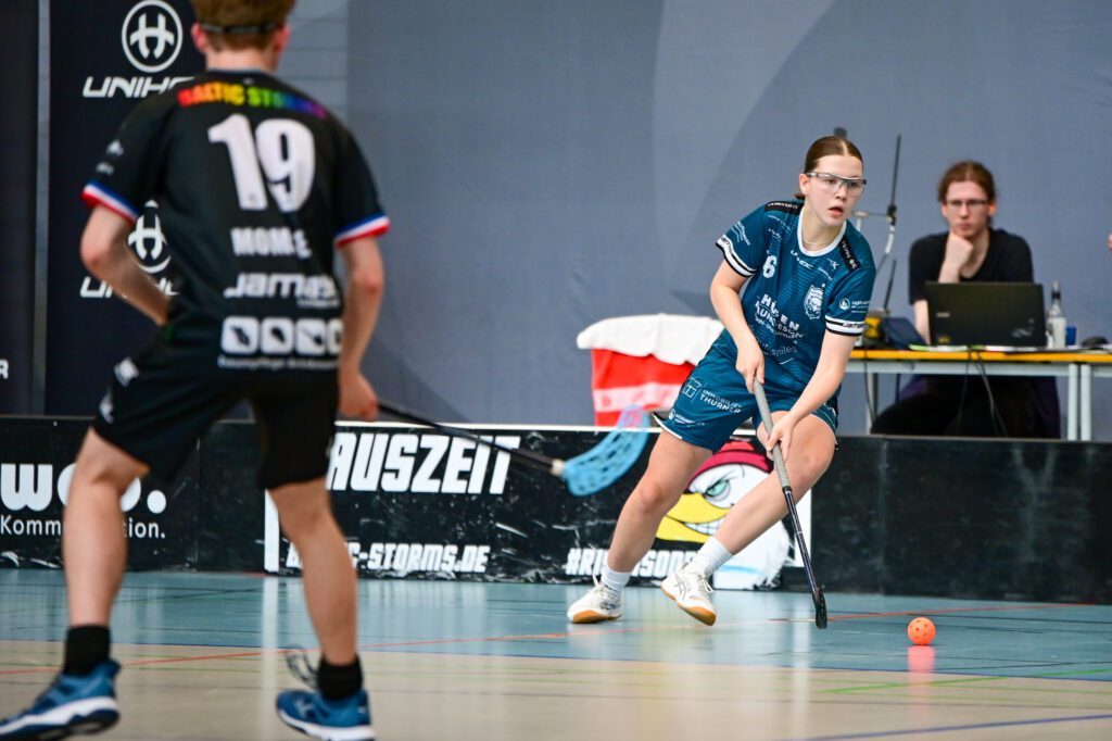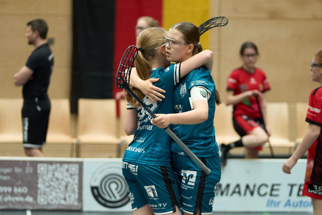 Mit aktuell ca. 85 Spielerinnen unter 18 Jahren nähert sich der Mädchenanteil innerhalb der DJK Floorballanteilung ca. 40% und ist ist in den letzten Jahren erfreulicherweise stark gestiegen.